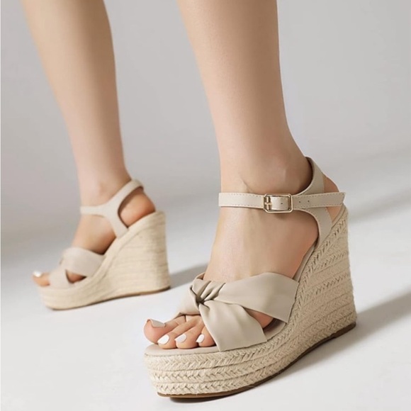 ZodyBoer Womens High Heel Espadrille Platform Wedges Sandals with Bow Tie NWOT 9