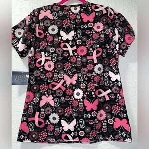 Zoe & Chloe Butterflies and Bows Women's 2 Pocket Scrub Top (NWT)