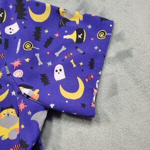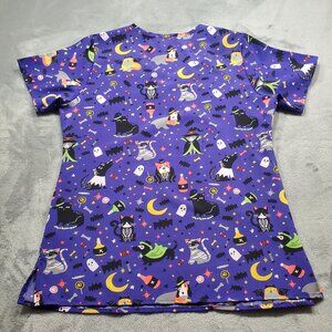Zoe + Chloe Halloween V-neck Scrub Top 2 Pockets Spooky Cats and Dogs Wmn Sz S