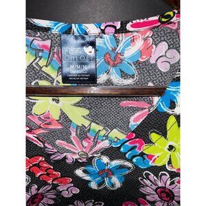Zoe + Chloe Womens Floral & Woof Print Scrub Top M
