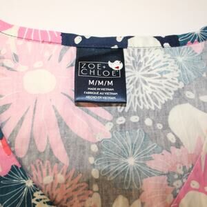 Zoe & Chloe Womens Scrub Top Sz M short sleeve Floral multicolor Cotton