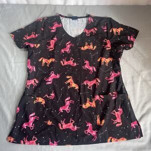 Zoe + Chloe Women's V neck Scrub top Midnight Unicorn dark zodiak Size M