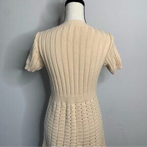 Zoe & Claire Cream Fit & Flare Short Sleeve Midi Sweater Dress