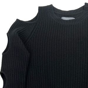 In excellent used condition Zoe Jordan black wool blend cold shoulder with cutouts on the sleeves. A provocative touch to thus cozy oversized sweater. Pull over style with ribbed neck and cuffs. British luxury design.