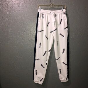 Zoe Karssen sweat pants with “repeating private” in great condition. Button fly and side pockets. Adjustable waist with drawstrings. Relaxed track sweatpants.