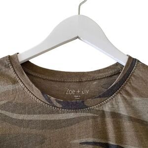 Zoe & Liv Camo Gray Cotton Blend Soft Short Sleeve XL #1073