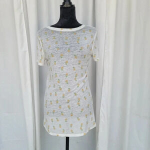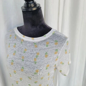 Zoe + Liv Pineapple Print Short Sleeve Crew Neck T-shirt Women's Small Sheer