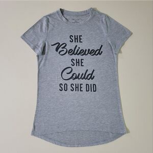 Wear this Zoe + Liv women's graphic t-shirt to celebrate your inner strength, belief, and the power of dreaming big! Soft heathered short sleeved tee has a crewneck and a hi-low hemline. A fun top to prove that everything is possible . . . as long as you PERSIST!