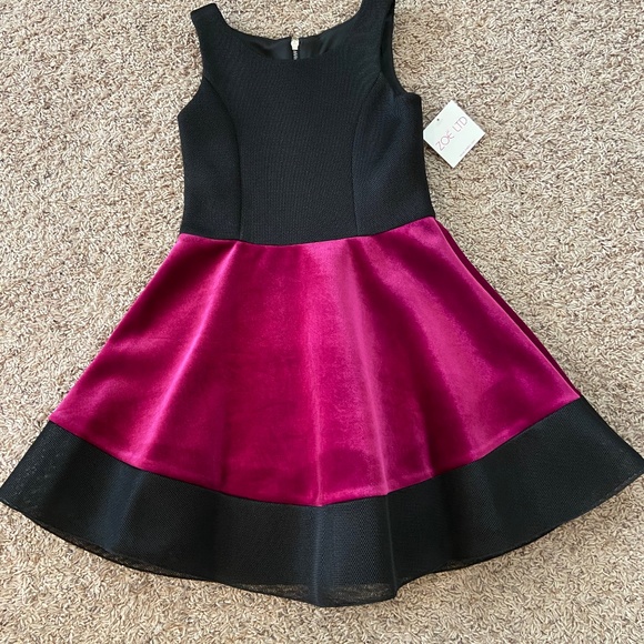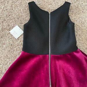 Scuba upper and bottom, circular skirt with fitted waist made with luxurious deep wine color velvet.