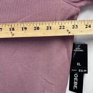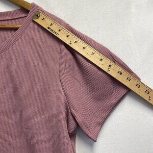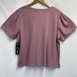 Zoe + Phoebe Short Puff Sleeve Round Neck Waffle Knit Top Women XL Mauve NWT