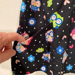 Zoe t Chloe Scrub Top Women’s Size M Cotton Owl Print V-Neck Pullover