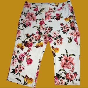 Zoe+phoebe petite white stretchy capris with pretty rosé flower designs!