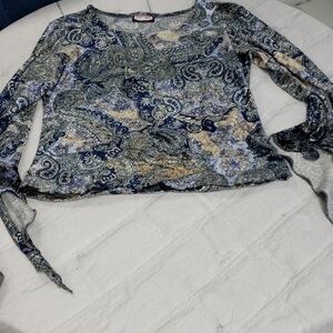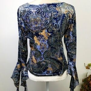 Zoey Beth Crushed Velvet Paisley Boho Top Bell Slv