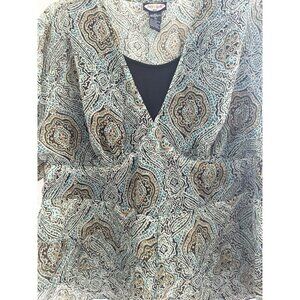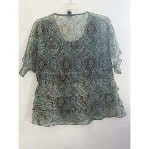 Zoey Beth Womens Babydoll Blouse 2X Multicolor Paisley Tiered Short Sleeve Y2K