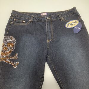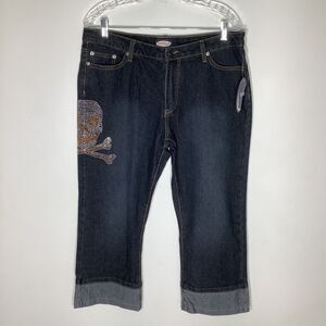 Zoey Beth Womens Jeweled Skull Capri Jeans Blue Size 13/14 NWT