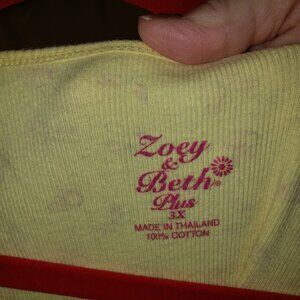 Zoey & Beth Women's Plus Size 3X Tank Top Light Yellow with Pink Butterflies