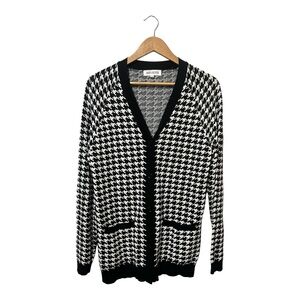 Zoey + Oliver Houndstooth Cardigan Sweater Size 4 (Large/XL) Black White