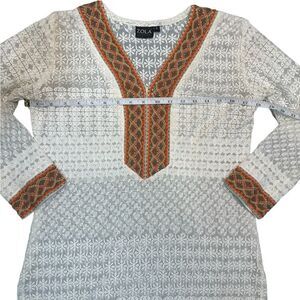 Zola Earthly Fashions Ivory Lacey Tunic Dress with Embroidered Accents Large