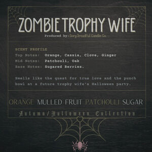 Zombie Trophy Wife Crackling Wood Wick Candle: Orange Patchouli Sugar Scent