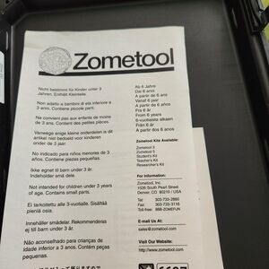 Zometool construction kit featuring vibrant rods in blue, red, and yellow. Includes manual and connectors for creative building. Used, in very good condition, comes with manual and case