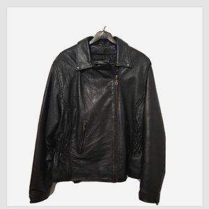 Zony Inc Black Leather Biker Moto Jacket Zip Out Lining