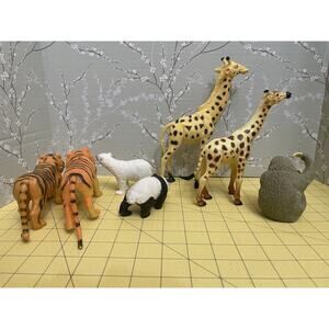 Zoo Animal Figure Lot Of 7 Tiger Giraffe Sloth Panda Bear Polar