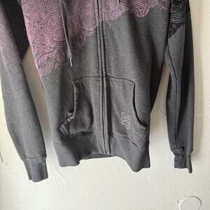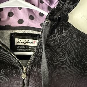 Zoo York Hoodie Y2k Vintage Medium Gray Purple Full Zip Skater Velvet Burnout