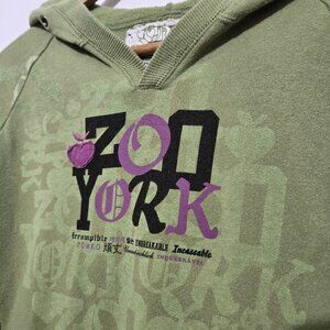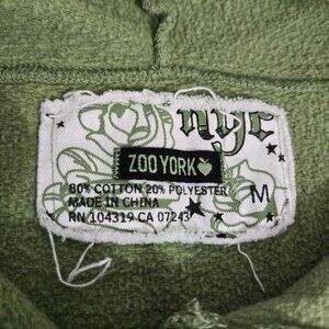 Zoo York Womens Y2K Hoodie Size M Skater Grunge Graffiti NYC Punk Pockets Green