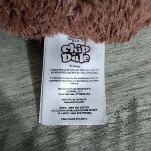 The product is a Zoobies blanket pet featuring Disney's Chip and Dale characters. This stuffed animal is designed to resemble a brown chipmunk and is part of the Chip and Dale character family. It combines the functionality of a blanket with the cuddliness of a stuffed animal, making it a fun and cozy toy for children.