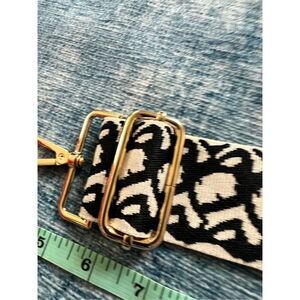 Replacement crossbody strap from Zooeass. Beige with black pattern. Gold tone hardware. Adjustable length. Approx 1.97" wide, 49" full length (included the lobster style clasps)