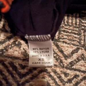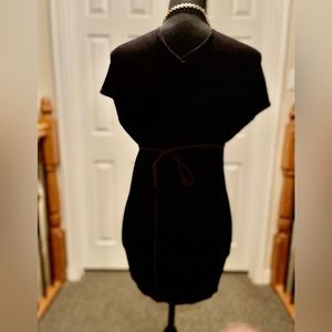 Black long top by Zooey Xsmall with v neck and little green belt under the breast.