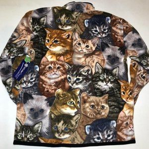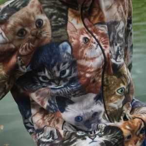 This is a brand new with tags cat jacket made in Brooklyn, NY. This is a cute cat lightweight jacket. The image is nice and clear. If you like cats, you will love this jacket! This jacket is perfect for a cat lover! The jacket is made out of polyester. It is machine washable. Sizing - It is unisex sized! The sizes run larger than usual. Stand up/ Fold Down Collar. Full Zipper. Elastic Cuffs. Long Sleeves. Two Side Pockets.