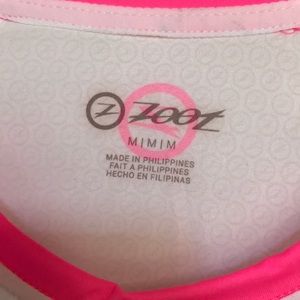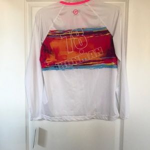 Zoot long sleeve performance top. Size medium. White with hot pink color and Ironman artwork. NWT