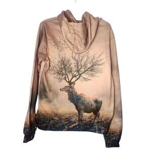 Zootop Bear Deer Tree Printed Hoodie Size XL Beige Pockets Hunting Nature