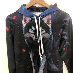 Zootop Bear Graphic Wolf Hoodie in excellent gently used condition with light pilling and misaligned paw, see pictures.