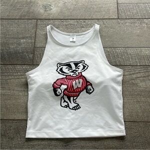 Zoozatz Bucky Badger Crop Top Tank Top with Built in Bra Size XS.