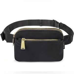 Zorfin black belt bag, Fanny pack, cross body bag with 4 zipper pockets.