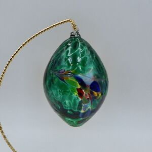 Zorza Hand Blown Handmade Green Glass Drop Ornament From Poland Swirl Artisan