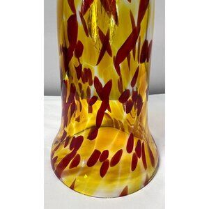 Handblown glass angel figurine with a captivating yellow and red swirl pattern. This elegant piece adds a touch of festive charm to any holiday decor, embodying a timeless design that's perfect for collectors and gift-givers alike.