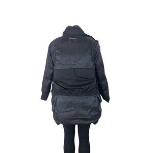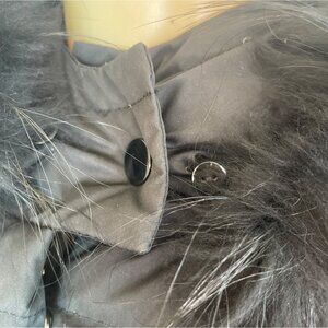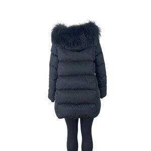 This Zow Zow black puffer jacket combines warmth and style with its faux fur trim hood. It features snap and zipper closures, ensuring a secure and snug fit. The jacket's design is versatile, suitable for cold weather, and offers a chic look with its sleek silhouette.