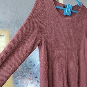 Elegant burgundy long knit top by Zozo. Light weight and cozy! Dress up or down!