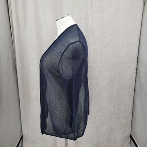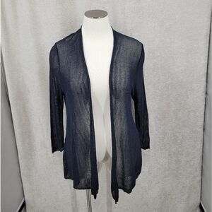Zozo Navy Blue Net Knit Open Front Women's Cardigan Sweater Duster Topper
