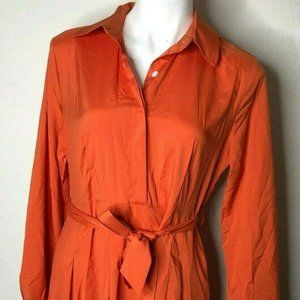 STYLE: Pure long sleeve shirt dress with side pocket and big swing skirt, pleated belt
