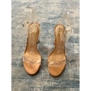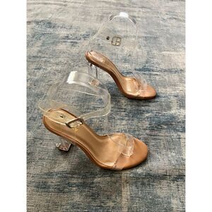 ZriEy Beige Clear Strappy Block Heel Sandal Size 6
