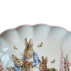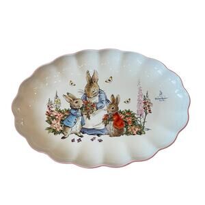 Zrike, Beatrix Potter, Peter Rabbit - Oval serving platter - 14" x 10" x 1 1/2" - Cute Easter design of Peter Rabbit and Josephine Rabbit (his mom) and friend picking flowers - Brand new with tags.