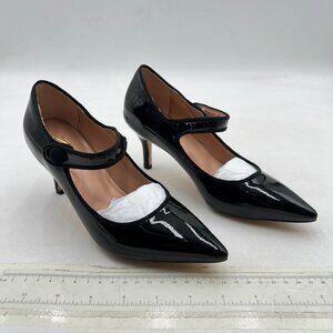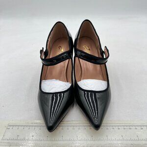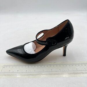 Zszszsu Black Mary Jane Pump Pointed Toe Mid Heels Ankle Strap Dress Shoes