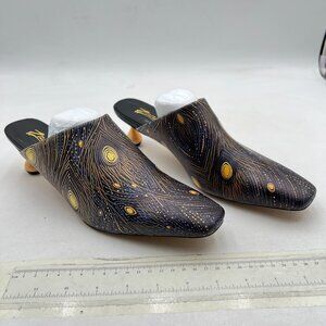 Zszszsu Navy Square Toe Mules Low Special Kitten Heels Slip On Fashion Shoes