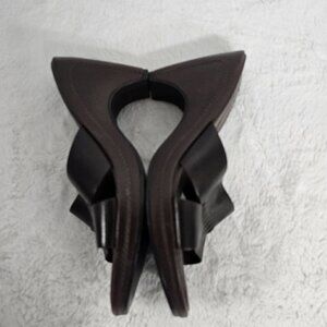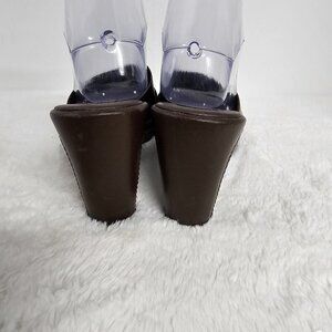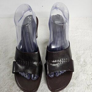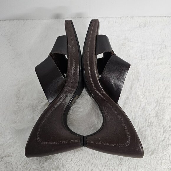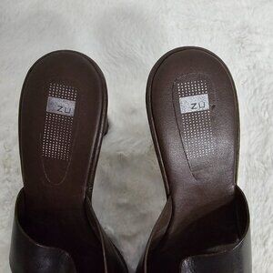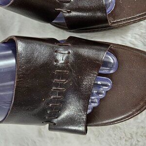 Zu Chocolate Brown Leather Whipstitch Slide On Heeleed Sandal Size 9