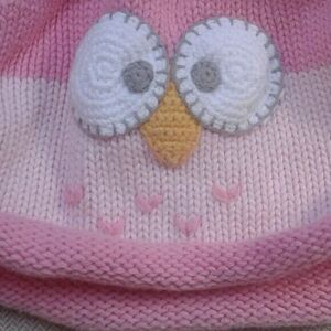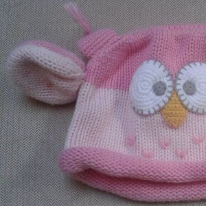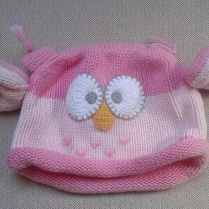 Two-Tone Pink with Fun bird/owl crocheted Design, hearts, cute ears.