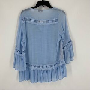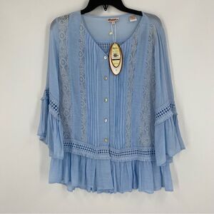 @Zucar Women’s V Neck Blue Button Front Boho Blouse size M